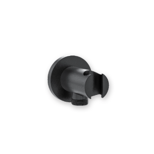 Brass Round Shower Outlet Elbow with Hand Shower Holder – Black